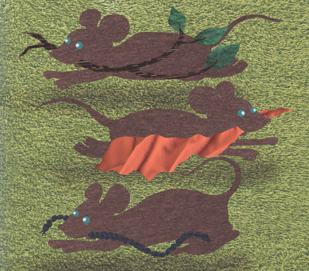 This is a children’s picture book I wrote and illustrated in 2010. The images were created in Photoshop, using a series of scans I took of real fabrics (towels, sweaters, t-shirts, linens, etc) as a texture palette, and altering their hues electronically. I first created a mock-up sketch of the illustrations, which I traced to determine the silhouette of each element in the foreground and background of the images.